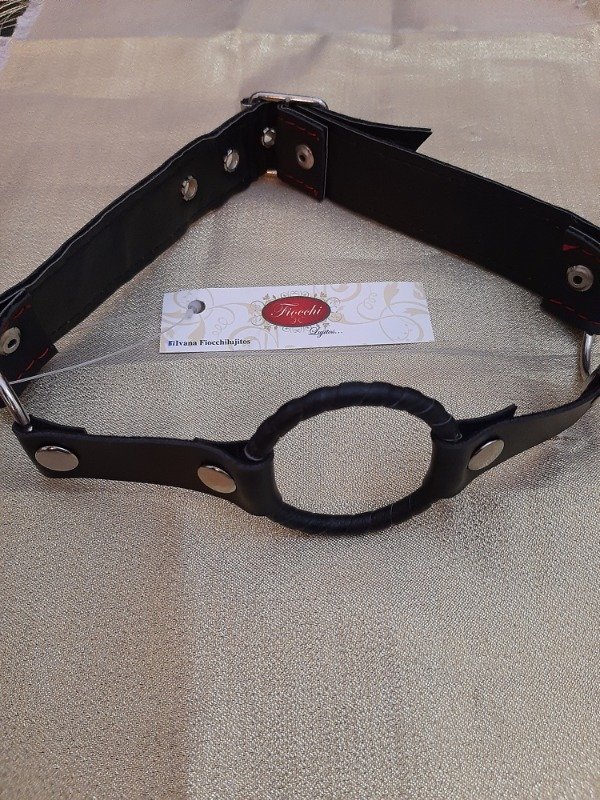 Mordaza con aro de cuero color negra.
