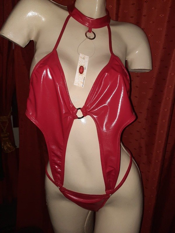 Body de vinilo rojo con tiras regulables en espalda y cadera🔥🔥